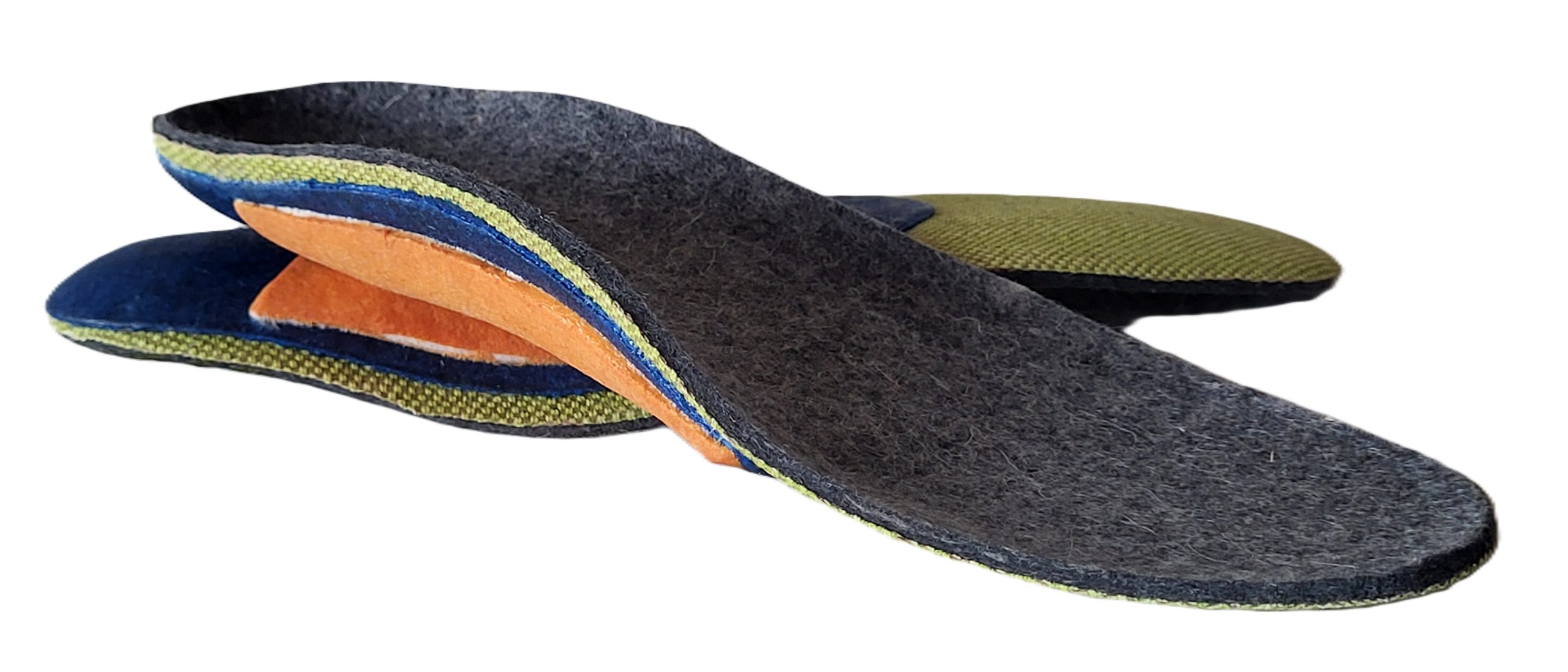 3D Essentials are our most popular therapeutic insole. Featuring our proprietary Wool and Natural Rubber technology, These insoles offer the support of custom insoles at a fraction of the cost. Effective for repetitive stress activities such as hiking, running and standing on concrete. They offer mild anti-pronation support for those looking to improve foot health durring active living.